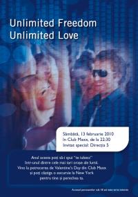 Dragi indragostiti sau cei care sunteti in cautarea jumatatatii, Club Maxx va invita pe 13.02 incepanad cu ora 22:30, la un concert extraordinar Directia 5 , concert cu dedicatie speciala din partea lui Cupidon. Anul acesta ii poti sopune persoanei iubite " TE IUBESC" intr unul dintre marile orase ale lumii. Vino sa iti strigi iubirea alaturi de noi si poti castiga o excursie la New York pentru tine si " Valentinul " tau. JOIN US!