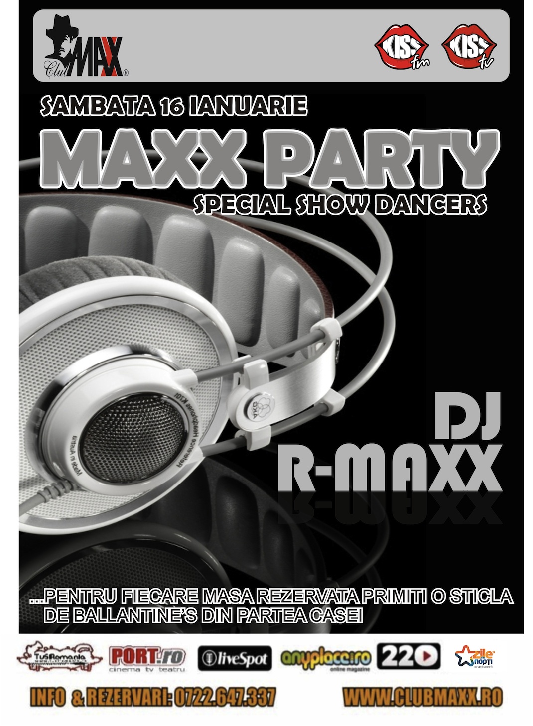 Sambata este ziua in care toata lumea se distreaza. Sambata este mijlocul week end ului si ziua pentru care toata lumea munceste toata saptamana. Club Maxx va avea grija ca aceasta seara sa merite din plin efortul asteptarii. Dupa cum v-am obisnuit Club Maxx inseamna petreceri la MAXX-im, seri la intensitate MAXX-ima, distractie MAXX-ima. Vino alaturi de noi SAMBATA 16.01 incepana cu ora 22:00.