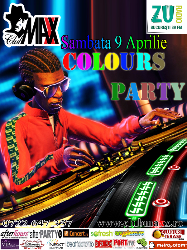 Sambata 9 Aprilie nu rata "COLOURS PARTY", o explozie de culoare si distractie te asteapta in Club Maxx. Join Us! Info&Rezervari:0722.647.337