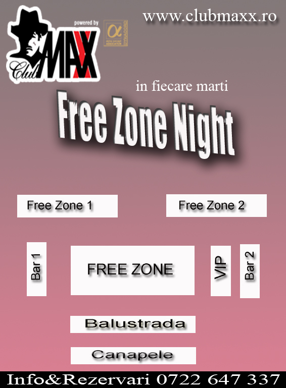 Marti grabeste-te sa ocupi o masa in "FREE ZONE" alaturi de inca 7 prieteni si primesti o sticla de whisky/vodka din partea casei !! Rezervarea mesei este gratuita si nu se impune consumatie. Intrarea libera pentru studenti. Info&Rezervari 0722 647 337