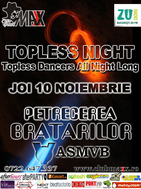 Joi 10 Noiembrie Club Maxx impreuna cu Asociatia Studentilor in Medicina Veterinara Bucuresti, te invita la "Topless Night" >>>Topless Dancers All Night Long<<<. Join Us! 0722.647.337