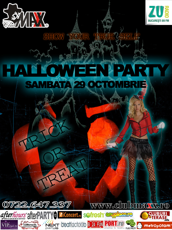 Sambata 29 Octombrie "Halloween Party" @ Club Maxx. Pentru o atmosfera “DE SPERIAT” nu uita masca acasa. Premii surpriza pentru cele mai infricosatoare costume! YOU WILL BE TERRIFIED! 0722.647.337