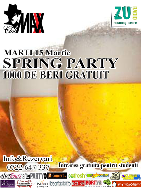 Marti 15 Martie va avea loc inaugurarea Primaverii in Club Maxx. Avem pregatite 1000 de beri GRATIS pentru voi iar Oferta Serii este de 50 Ron sticla de Whisky TOATA NOAPTEA !!! JOIN THE PARTY !!! info/rezervari 0722 647 337