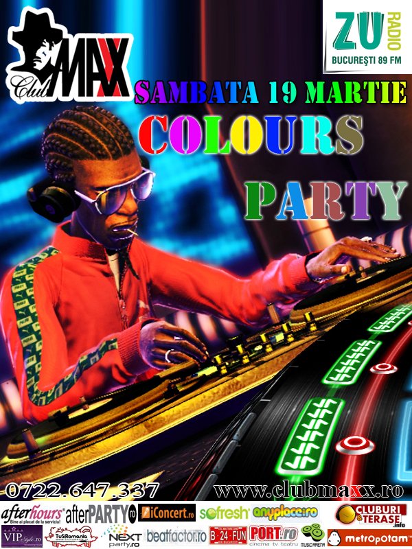 Sambata 19 Martie nu rata "COLOURS PARTY", o explozie de culoare si distractie te asteapta in Club Maxx. Join Us! Info&Rezervari:0722.647.337