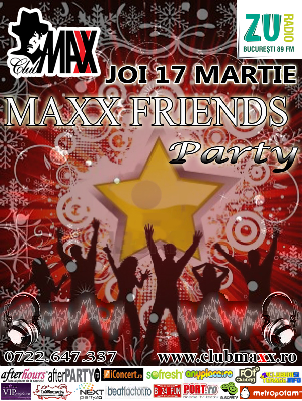 Joi 17 Martie :: MAXX FRIENDS PARTY :: Daca esti fan adevarat Club Maxx te premiaza!!! Multe surprize la Seara Fanilor Maxx! Info&Rezervari: 0722.647.337