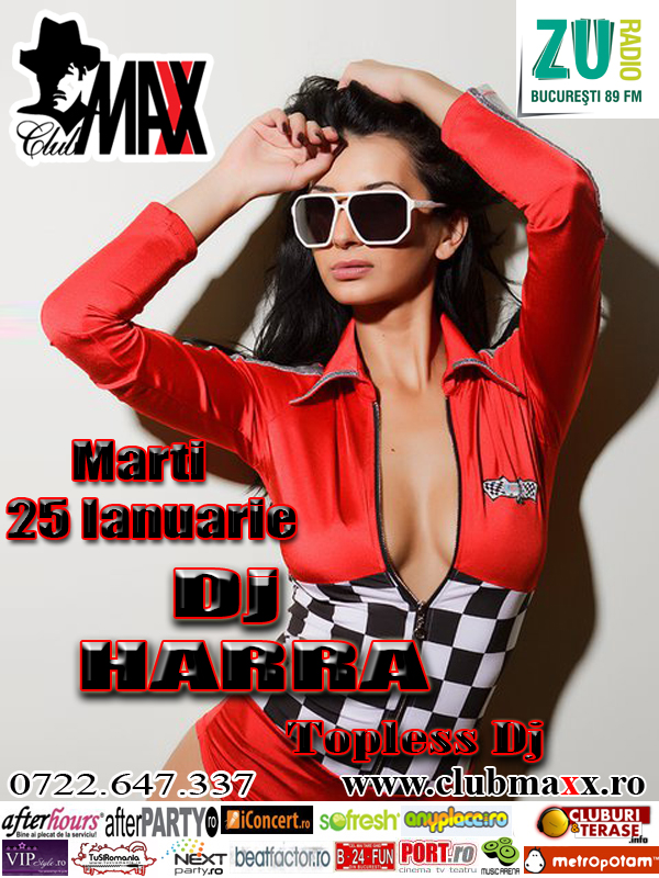 Marti 25 Ianuarie pentru prima data in Bucuresti DJ HARRA va mixa TOPLESS in Club Maxx JOIN US !!! >> info/rezervari 0722 647 337