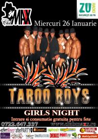 Miercuri 26 Ianuarie incepanad cu ora 22:00 Club Maxx va invita la o seara dedicata fetelor. Invitati speciali: TABOO BOYS. Intrarea si consumatia vor fi GRATIS pentru fete toata noaptea. Va asteptam sa petreceti alaturi de noi, o noapte de neuitat. JOIN US ! Info & Rezervari: 0722.647.337