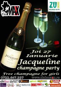 Joi 27 Ianuarie "JACQUELINE CHAMPAGNE PARTY" in Club Maxx. Fiecare grup de 4 fete primeste o sampanie la masa din partea casei !!! Join Us! Info&rezervari: 0722.647.337