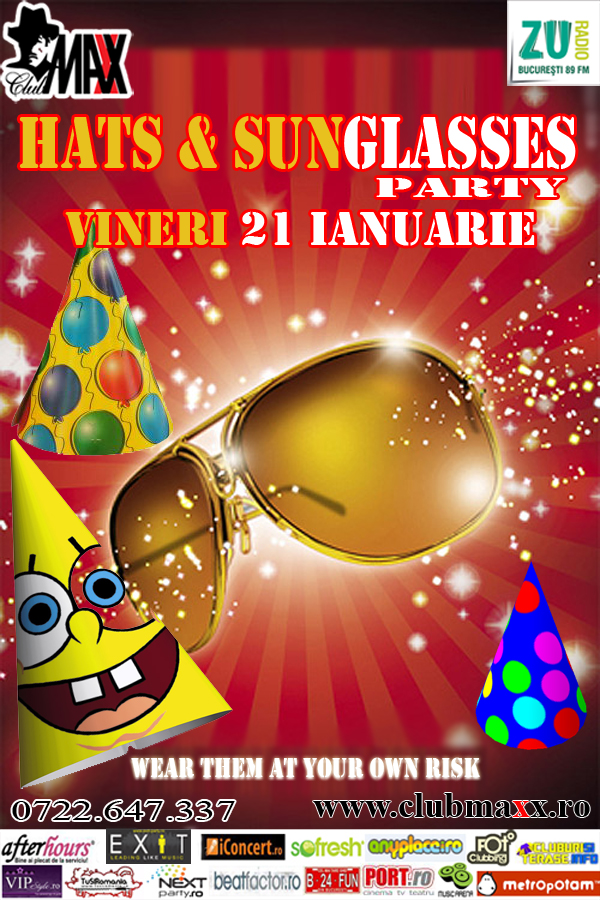 Vineri 21 Ianuarie - "HATS & SUNGLASSES PARTY" - vino in Club Maxx cu ochelarii de soare si palarie si ai intrarea libera si un cocktail gratuit din partea noastra! Cel mai Cool Look din club se alege cu un premiu surpriza! Join Us!!! Info&Rezervari:0722.647.337