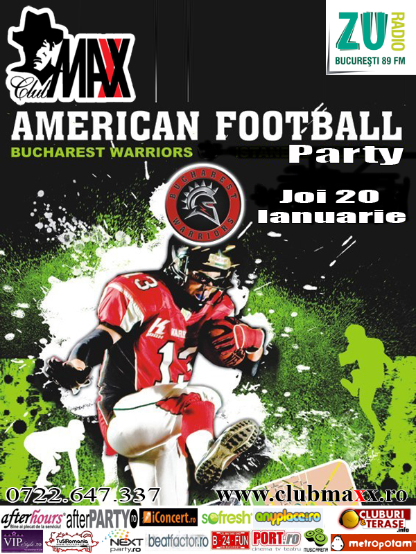 Joi 20 Ianuarie "American Footbal Party" : WARRIORS American Footbal Team SHOWCASE& Cheerleaders !!! Join Us! Info&Rezervari:0722.647.337