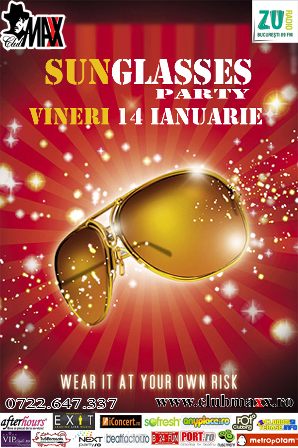 Vineri 14 Ianuarie - "SUNGLASSES PARTY" - vino in Club Maxx cu ochelarii de soare si ai intrarea libera si un cocktail gratuit din partea noastra! Cel mai Cool Look din club se alege cu un premiu surpriza! Join Us!!! Info&Rezervari:0722.647.337