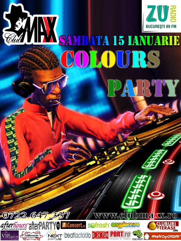 Sambata 15 Ianuarie nu rata "COLOURS PARTY", o explozie de culoare si distractie te asteapta in Club Maxx. Join Us! Info&Rezervari:0722.647.337