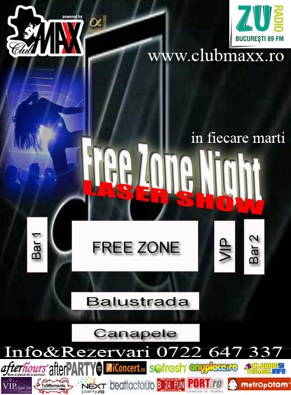 Marti grabeste-te sa ocupi o masa in "FREE ZONE" alaturi de inca 5 prieteni si primesti o sticla de whisky/vodka din partea casei !! 1000 DE BERI GRATIUTE! PRIMII 200 VOR PRIMII UN MINILASER CADOU!!! Rezervarea mesei este gratuita si nu se impune consumatie. Intrarea libera pentru studenti. Info&Rezervari 0722 647 337.