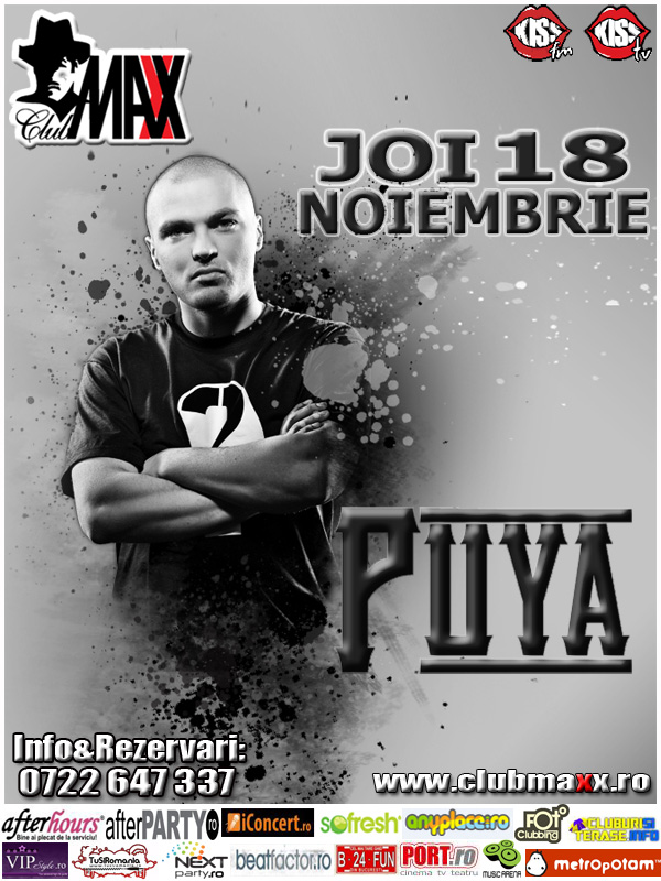 Joi 18 Noiembrie seria evenimentelor hip-hop continua in Club Maxx cu un super concert PUYA. Join Us !! Info&Rezervari: 0722.647.337