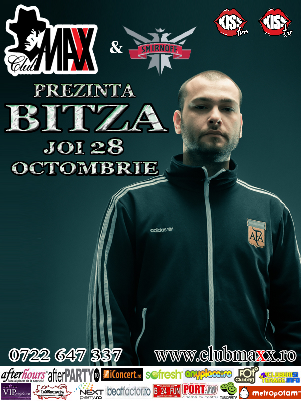 Seria evenimentelor "HIP-HOP NIGHTS" continua in Club Maxx. Joi 28 Octombrie CONCERT BITZA LIVE. Join Us! Info&Rezervari: 0722.647.337
