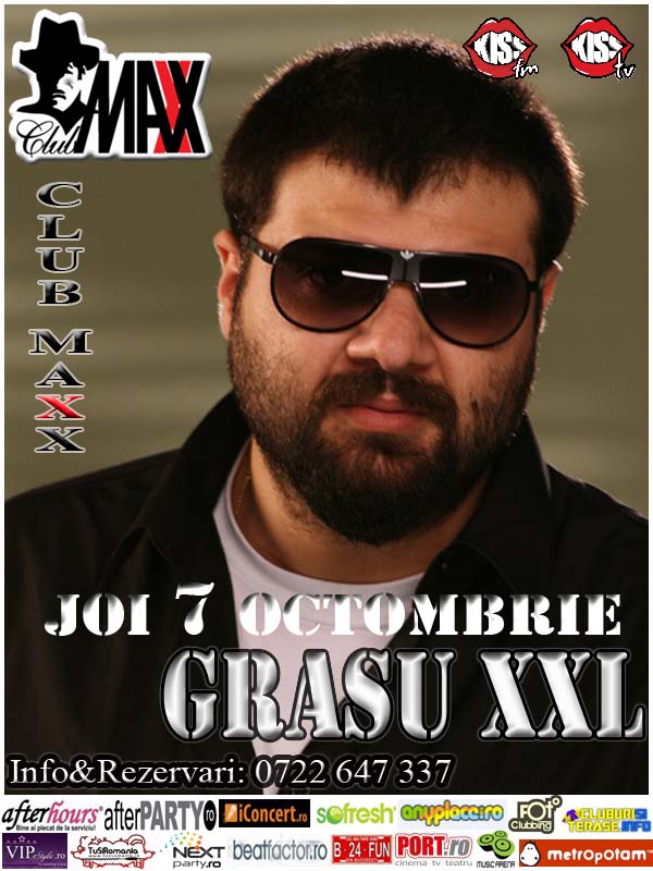 Joi 7 octombrie se anunta o noapte alba pe ritmuri de hip-hop. GRASU XXL va ridica sala in picioare intr-un super concert in CLUB MAXX. JOIN US !! Info&Rezervari: 0722.647.337