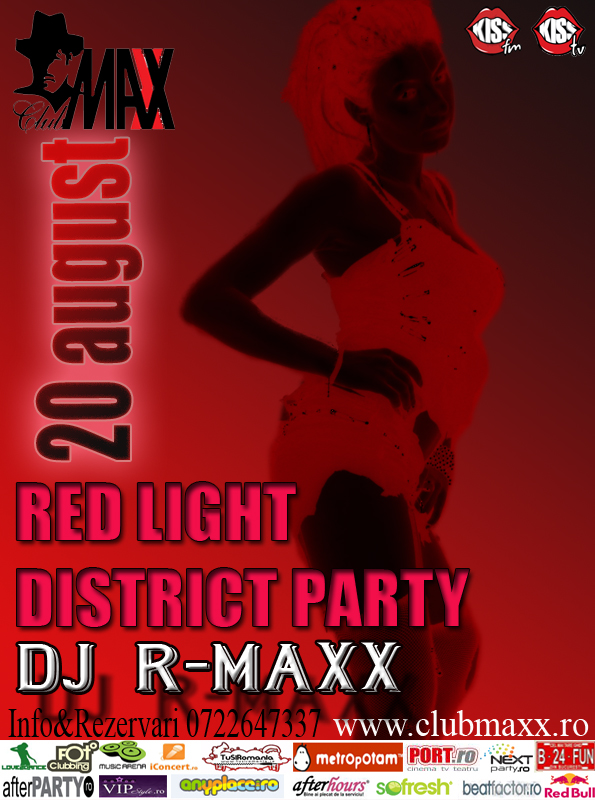 Vineri 03 septembrie CLUB MAXX te invita la o petrecere lipsita de inhibitii menita sa te faca sa uiti de grijile cotidiene. Incepe-ti weekendul cu RED LIGHT DISTRICT PARTY si profita de oferta serii: 60 RON sticla de J&B/Smirnoff. Rezervarea mesei este gratuita si nu se impune consumatie. Intrarea libera pentru studenti si pentru fete. Info&Rezervari: 0722 647 337.