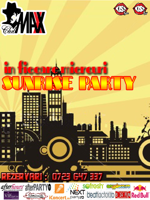 Miercuri 25 august CLUB MAXX Regie te invita la SUNRISE PARTY. Impreuna cu noi petreci pana la rasaritul soarelui. Join us !! Info&Rezervari: 0722 647 337.