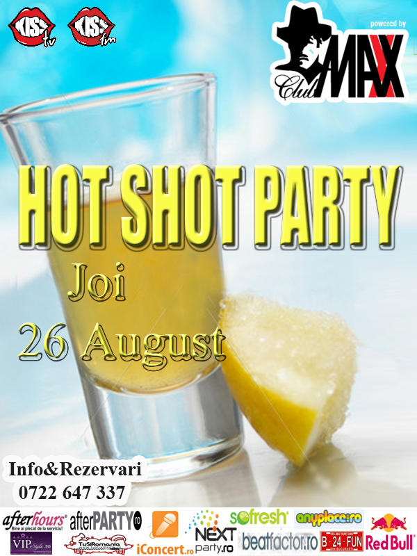 Joi 26 August - HOT SHOT PARTY. INSCRIE-TE LA CONCURSUL DE SHOT-URI SI TESTEAZA-TI LIMITELE ::: 10 SHOT- URI DESCHIDEREA :: 20 SHOT-URI BLIND-UL ::::: REZERVAREA MESEI ESTE GRATUITA SI NU SE IMPUNE CONSUMATIE ::::: Info&Rezervari 0722 647 337