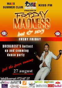 MAXX SUMMER CLUB te asteapta vineri 27 august la cea mai nebuna petrecere: FRIDAY MADNESS. Info&Rezervari: 0723 647 337.