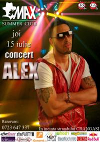 Joi 15 iulie seria concertelor la MAXX SUMMER CLUB continua cu un super-show ALEX. Nu rata o petrecere pe cinste alaturi de unul din artistii momentului. Info&Rezervari: 0723 647 337