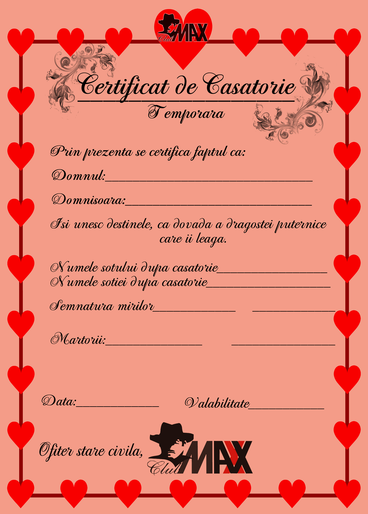 Club Maxx da startul saptamanii iubirii !!! Marti 14 Februarie, de Valentine`s Day, de buna voie si nesilit de nimeni, parintele Club Maxx oficiaza casatorii temporare! Fie ca iti gasesti perechea in club sau ai deja o jumatate vino in Club Maxx sa intrii in "legalitate"! Proaspat casatoritii vor avea o seara plina de surprize! Join Us! 0722.647.337